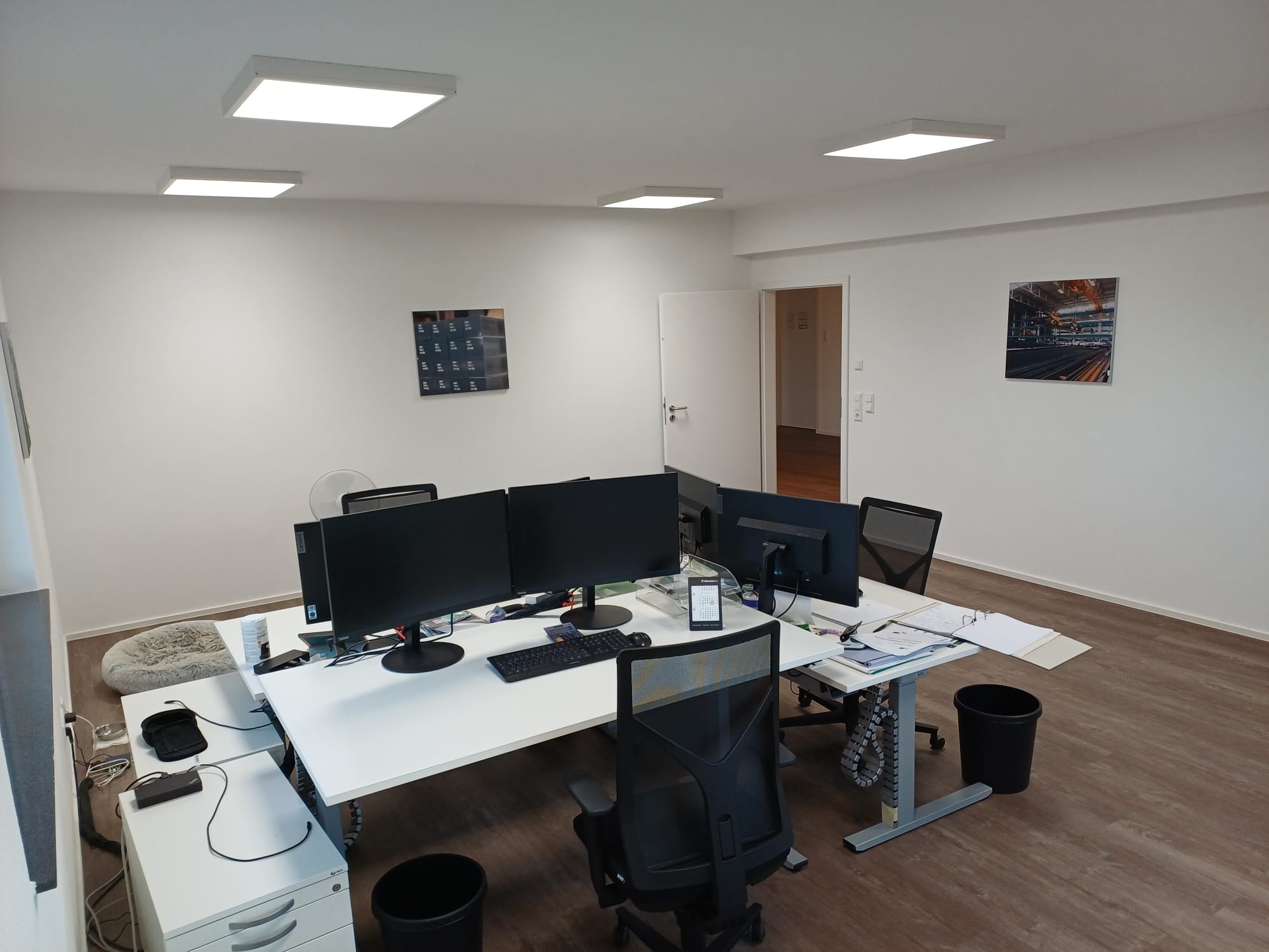 Das Gebäude, das im jahr 2020 fertig gestellt wurde, verfügt über einen großzügigen Eingangsbereich, in den Büros wunderschöne Holzböden und z.T. bodentiefe Fenster, die viel Helligkeit in die Räume bringen. Die Büroräume haben funktionale großzügige Grundrisse. Die Flure wurden mit Granit und die Sanitärräume mit Fliesen belegt. Auf der Terrasse, die zur Bürofläche gehört, kann wunderbar die Mittagspause abgehalten werden. Ggf. können auch einzelne Räume angemietet werden.
