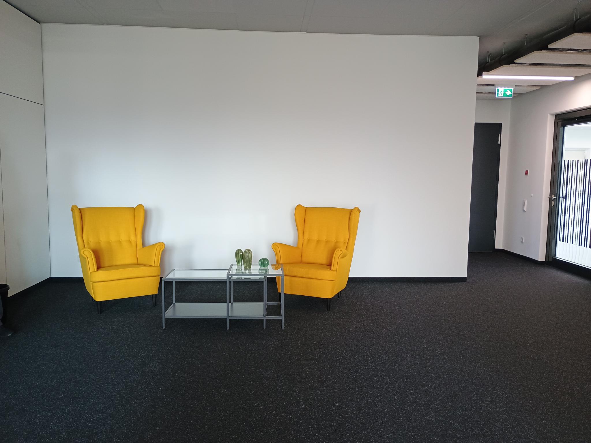 - Möblierung (Beleuchtungselemente, Schreibtisch, Schreibtischstühle, Schränke, Container)